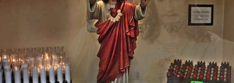 Summary Heritage Restoration recently repaired and repainted this statue of the Sacred Heart of Jesus. Its faded, creamy colors were replaced with deeper reds and improved detailing.