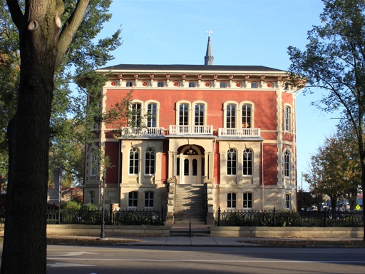 The restoration of Reddick Mansion’s exterior architectural elements was an eighteen-month long project costing upwards of 1.5 million dollars. Ninety-four windows were removed from the house and brought to Peoria for a full restoration and EPA certified lead abatement. The delicate fir frames were stripped of their old lead-based finish, repaired of damages that had occurred over the past 162 years, and repainted in colors accurate to the décor of their respective rooms in the mansion. Every pane of vintage window glass was cleaned prior to reinstallation. Missing glass was replaced with panes fabricated in the same period (or similarly crafted restoration glass). The rooftop cornices (which were constructed of terracotta, metal, and wood), were painted in a light cream color with crimson highlights. These colors were brought back to recreate the mansion’s original 1858 color scheme. The entry doors were restored and repainted to freshen the exterior. During the mansion’s eighty-eight years as a public library, one of the vintage doors was removed. This door was recreated as an accurate duplicate and installed at the rear of the house. Fire escape doors on the balconies were also replaced with custom made duplicate windows. The final phase of the restoration of Reddick Mansion was to repair the rotting south and east balconies. These components were removed and taken to Heritage Restoration. As much timber as possible was salvaged for reuse. The iconic balconies were rebuilt based on 1860-era photographs of the Mansion. Once all of the balconies were reinstalled, phase one of the project to recreate Reddick Mansion’s historic exterior was complete. Phase two of the exterior restoration will include the restoration and repair of the mansion’s exterior masonry. The site can be seen today on the corner of Lafayette and Columbus Streets in the heart of Ottawa Illinois.