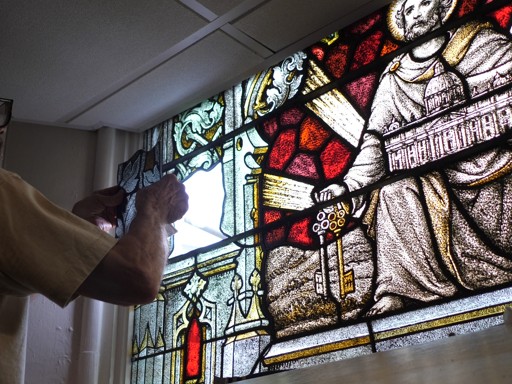 A stained glass window in a city’s oldest surviving church was recently vandalized. A replacement section was created to scale and installed into the original glass panel.