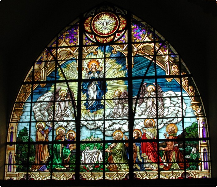 By no means do either of these thought processes have to be used individually. Combining an architectural space with color, while at the same time telling a story, is seen in the most descriptive windows in the world. Resurrection Church in Leawood, Kansas, the Cathedral Basilica in Lexington, Kentucky, the cemetery mausoleum in Justice, Illinois, any of the major cathedrals in Europe, and even in the Al Faisaliah Centre, Riyadh, Saudi Arabia are great examples of large windows full of design and color that tell great stories.